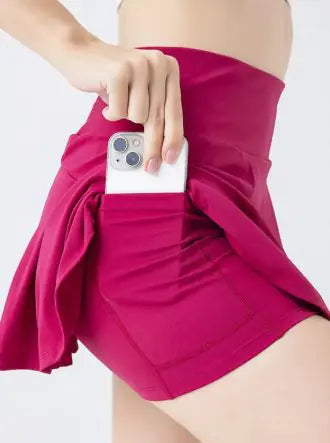 The Women's Pleated Tennis Skirts combine style and performance with a high-waist design, wide waistband for tummy control, and built-in shorts for added comfort and modesty. Made from thick, stretchy nylon fabric, these skirts offer breathability and moisture-wicking properties to keep you cool during any activity. Featuring two deep pockets for essentials, they’re perfect for tennis, golf, or pickleball, and stylish enough for everyday wear.